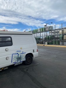 For the van, an entire day was spent in the Lowe’s parking lot spray painting the panel surrounding my 110v electrical inlet. I had discovered that the old inlet was leaking at my parents house but stuck a bandaid on it (literally a plastic bag held on with painters tape) until I was back “home” and needed to be able to plug into power since I wasn’t driving every day to keep my battery charged.